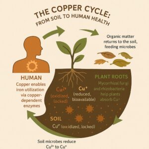 In degraded soils, where microbial communities are broken and organic matter is scarce, copper availability plummets. Plants grown in such soils may be copper-deficient, and so too will the people eating them. Without copper, no amount of iron supplementation can truly solve anemia or restore robust health. Instead, it sets up a terrain ripe for microbial imbalance in both soil and gut.