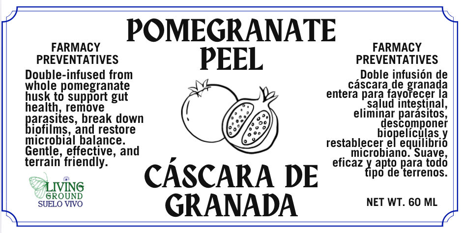 We offer a double-infusion tincture using pomegranate peel. It includes both the water and alcohol extractions to capture the full medicine of the plant. This tincture supports gut balance gently and effectively. To order, visit the Living Ground store.