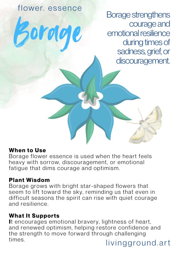 Another essence that has stayed close to me is borage. Borage is often called the herb of courage, but the courage it brings is not loud or aggressive. It is steady. It is the quiet strength that helps you do what is right even when the path looks uncertain or even impossible.